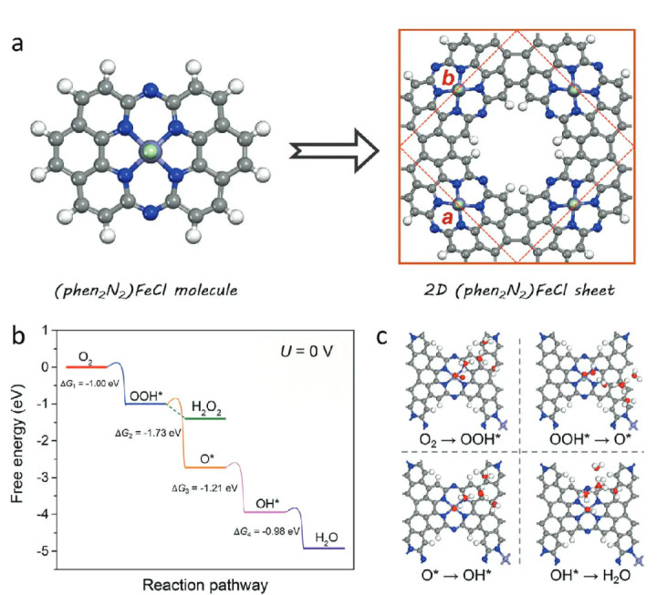 Liu等人的论文“Two‐Dimensional Organometallic Frameworks for Bifunctional ORR/OER”,通过设计吡啶型FeN₄配位的二维有机金属框架((phen₂N₂) FeCl),实现了高效双功能电催化,为OER/ORR双功能催化剂设计提供了典范。