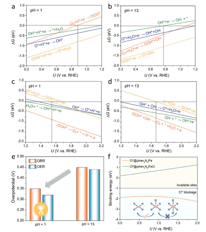 计算目标聚焦于开发兼具高ORR与OER活性的材料,传统催化剂往往因OER与ORR对中间体吸附强度的要求冲突难以兼顾,而该研究通过调控FeN₄的电子结构,实现了吸附能的协同优化。