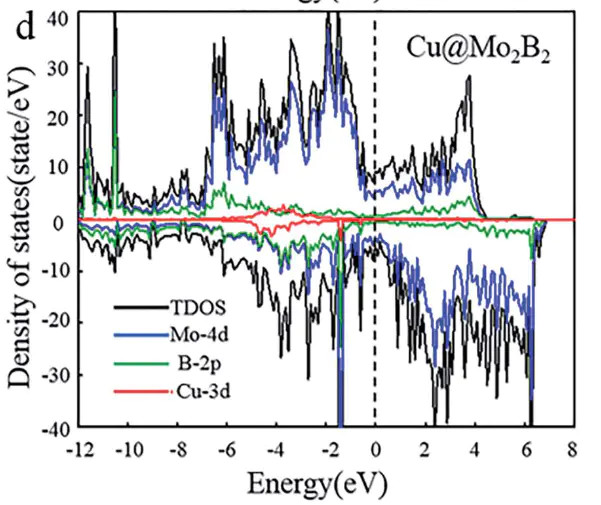 态密度分析则从电子结构层面解释活性差异,Zhang等人的研究中,态密度显示Ni嵌入Mo₂B₂后,Ni-3d轨道在费米能级附近的态密度显著增加,增强了电子转移能力,使OER活性提升3倍; Cu-3d轨道远离费米能级,电子传输受阻,开云app官方在线入口活性较低,证实了d带中心与催化活性的正相关关系。