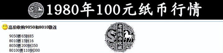 80版的100元,因为它发行时间早,存世量少,所以溢价相对来说,要高不少。