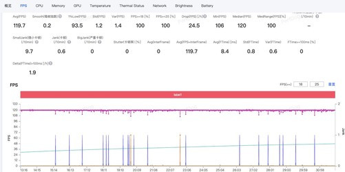《王者荣耀》高画质120帧,真我Neo8表现非常稳定,平均帧率达到120.1帧。