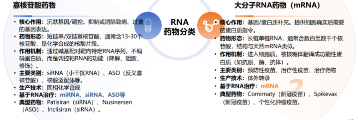 (1)两大技术分类:信使RNA(mRNA)疗法与寡核苷酸药物(以siRNA/ASO为核心)