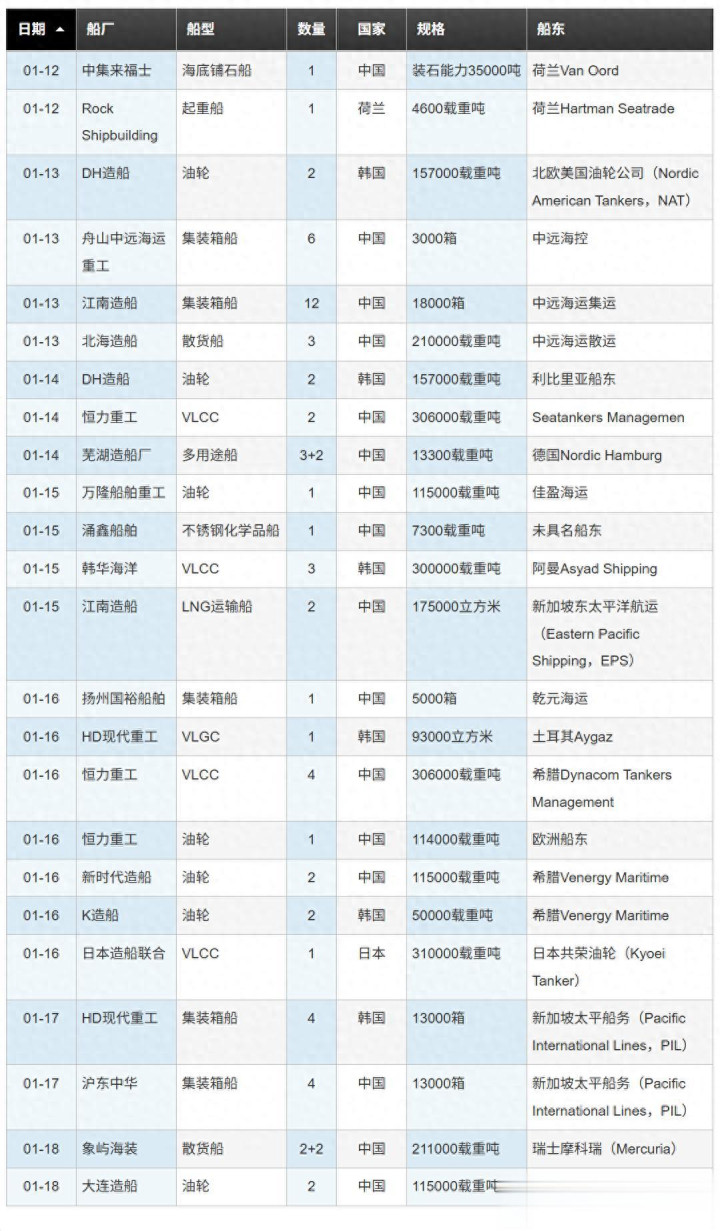 开云app 船厂订单汇总(1.12-1.18): 上周63+4艘