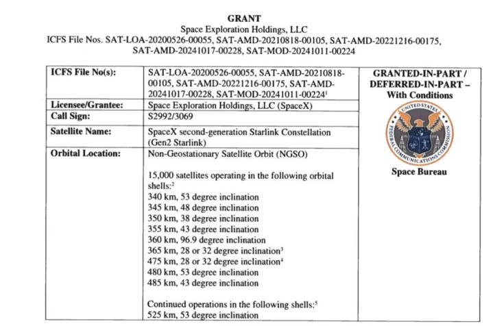 SpaceX共提出了约3万颗第二代“星链”卫星的申请,开云app此前FCC已批准7500颗,加上此次批准的7500颗,FCC表示目前只批准了这1.5万颗。这是因为第二代“星链”升级卫星尚未进行在轨测试,批准增派部分卫星符合公众利益。FCC将推迟批准剩余的1.5万颗卫星申请,包括拟在600公里以上高度运行的卫星。