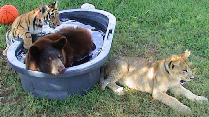 开云app官方在线入口 美国动物收容所里, 黑熊、老虎和狮子打破生物学规律, 成为好朋友