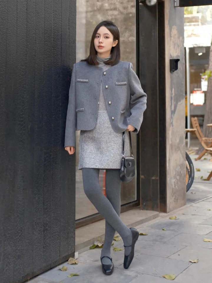 > 开云 “灰色小香风+半裙+厚灰”, 冬天穿一身灰色高级又耐看