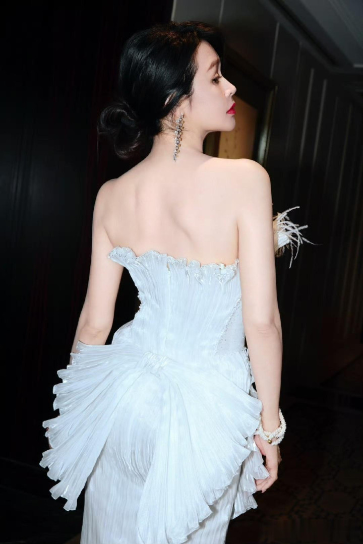 于明加穿白纱裙那叫一个韵味十足。她的白色抹胸裙材质超有讲究,带淡淡光泽感,像月光融入布中,高级又藏肉,有副乳啥的根本不怕。剪裁贴合身材曲线,腰部收得恰到好处,下半身裙摆一垂,能遮住腿上小赘肉。