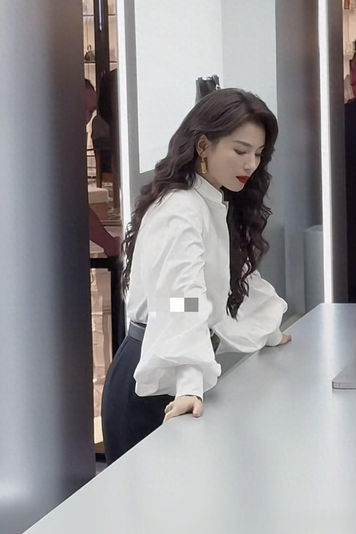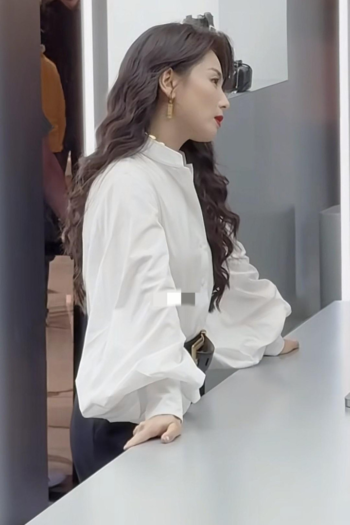 开云app官方在线 刘涛白色的立领衬衫搭配黑色下装, 卷发造型