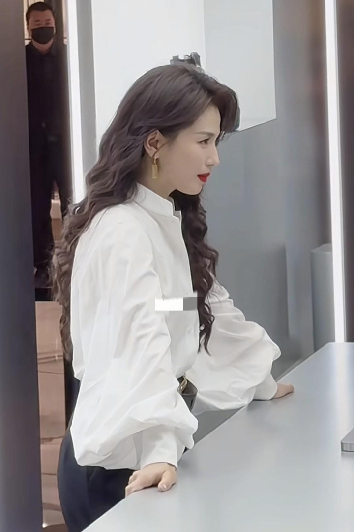 开云app官方在线入口-开云app官方在线 刘涛白色的立领衬衫搭配黑色下装, 卷发造型