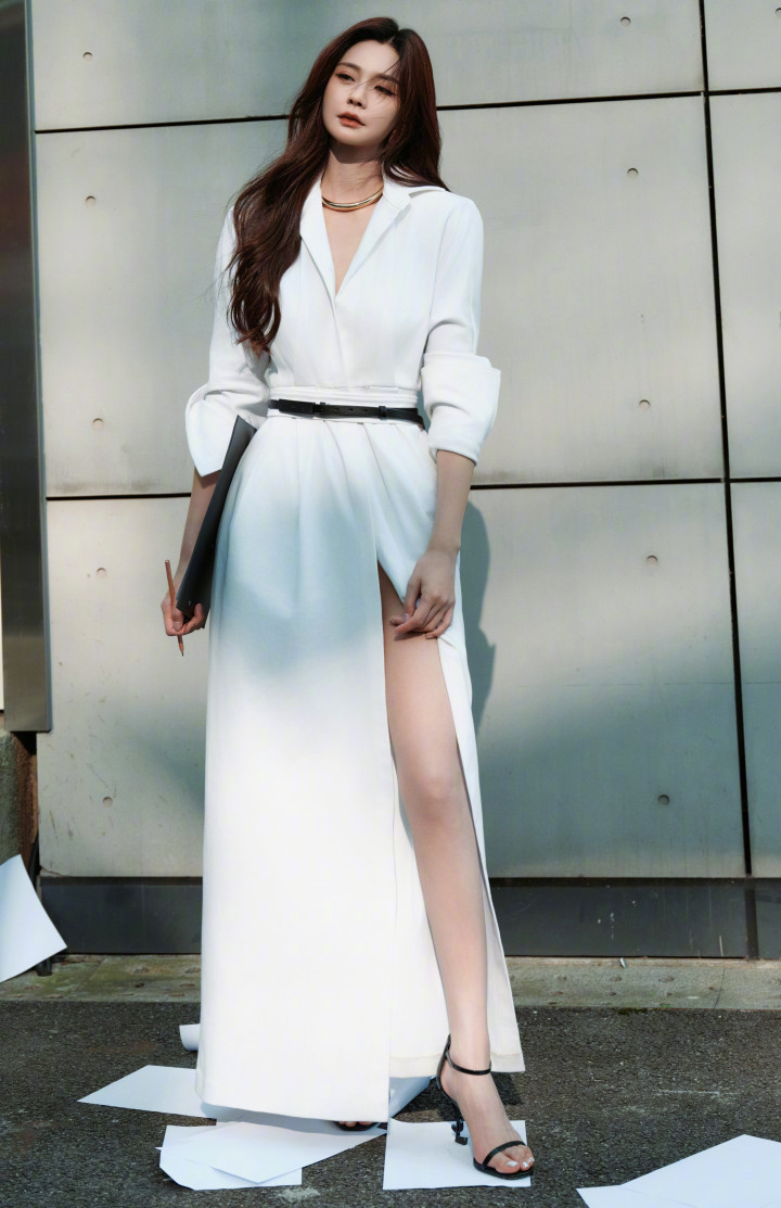 开云app 沈梦辰|大长腿配黑色一字带音符跟高跟鞋
