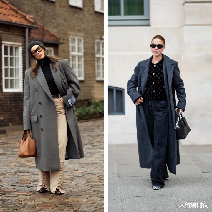 以超大号大衣为主角,妆容采用灰色渐变。点缀浅米色包包,让整体穿搭更具层次感,给人留下深刻印象。