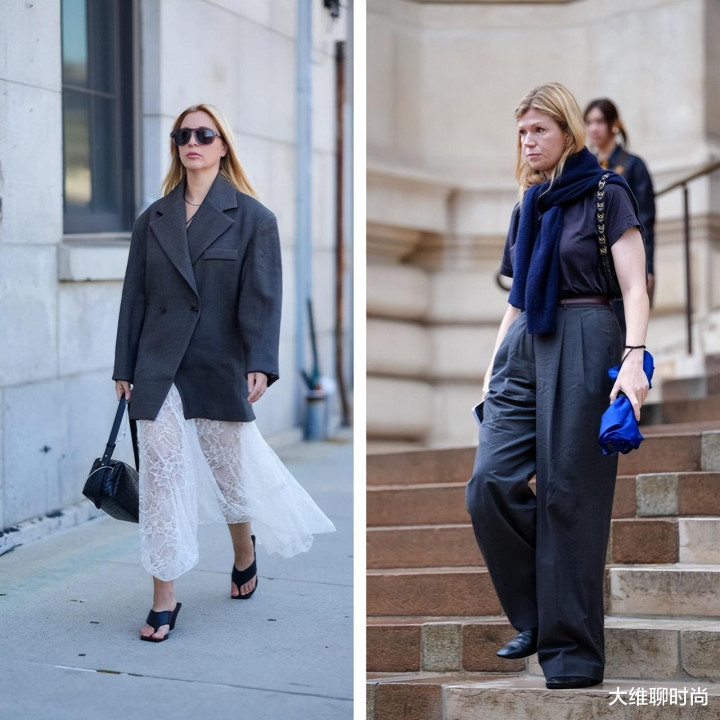 选择炭灰色长裤搭配建筑感廓形,瞬间提升现代感。外搭纯白 oversized 大衣,即刻完成戏剧感的当季造型。