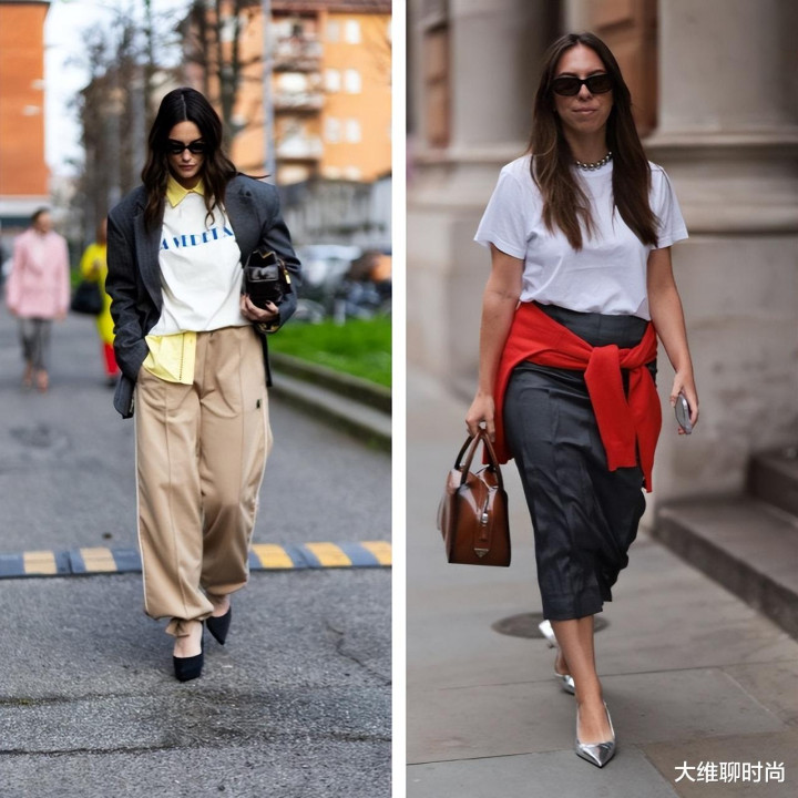 容易显得沉闷的炭灰色穿搭。偶尔搭配休闲的米色长裤或浅米色包包等轻盈感十足的米色调单品,能为整体造型增添活力平衡感,让着装更富层次变化。