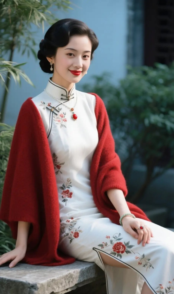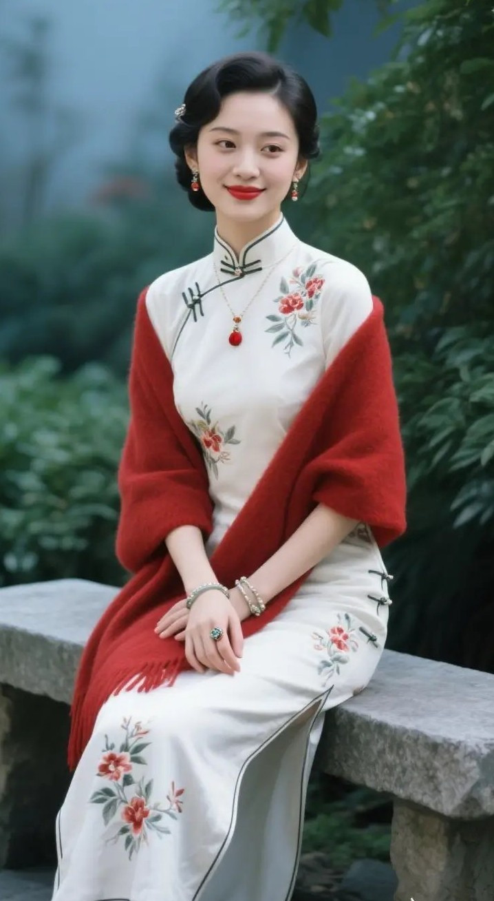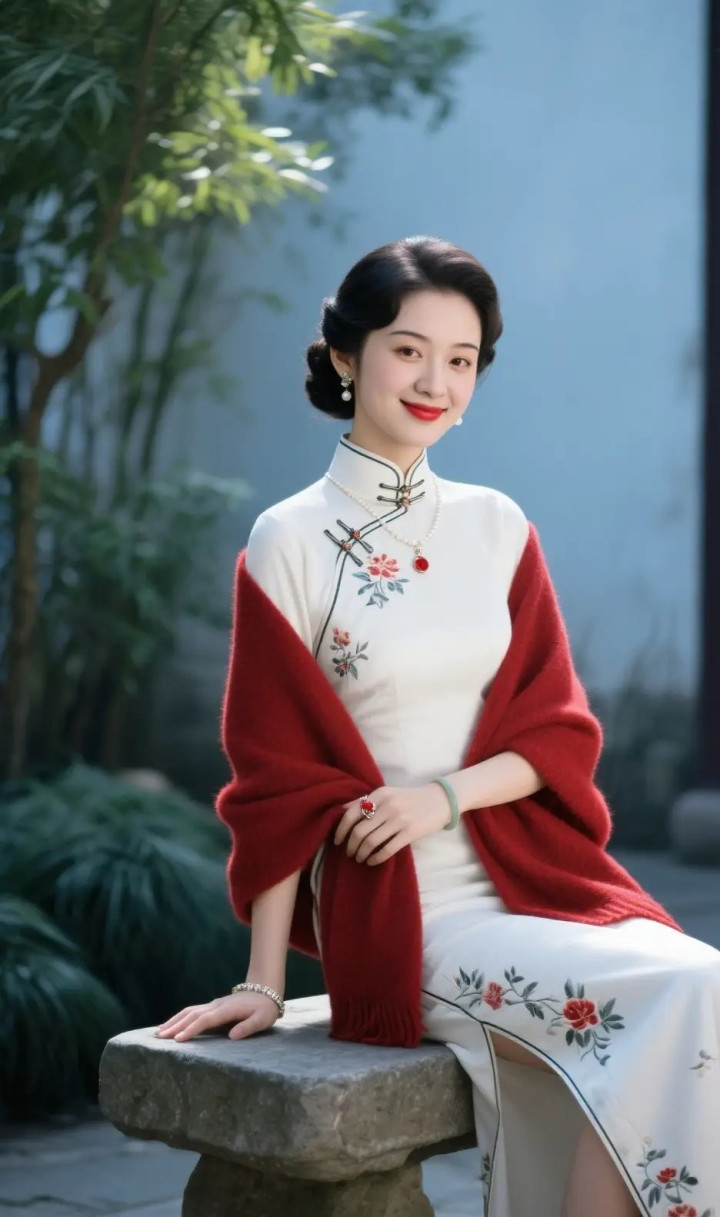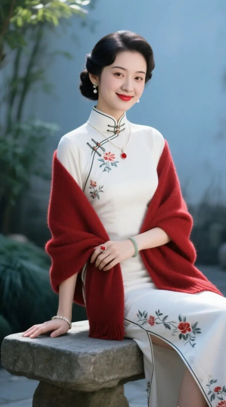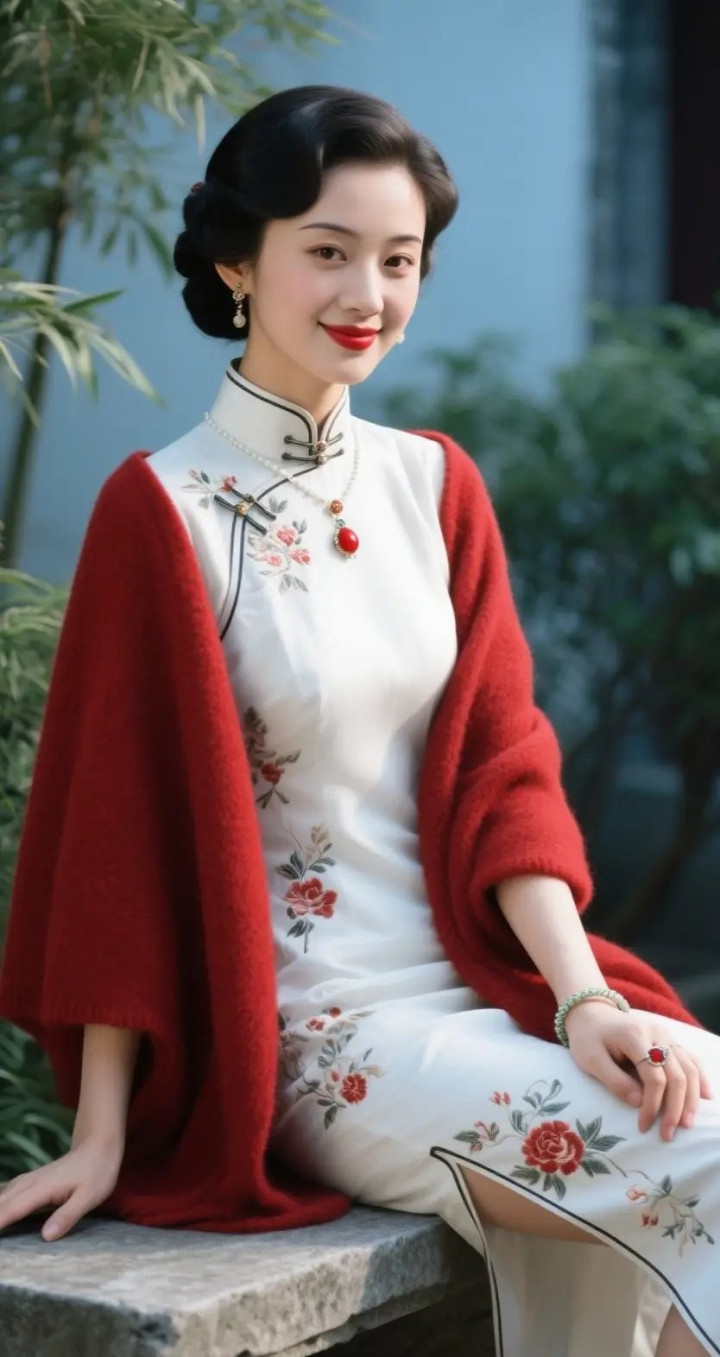 开云app 白旗袍与红披肩