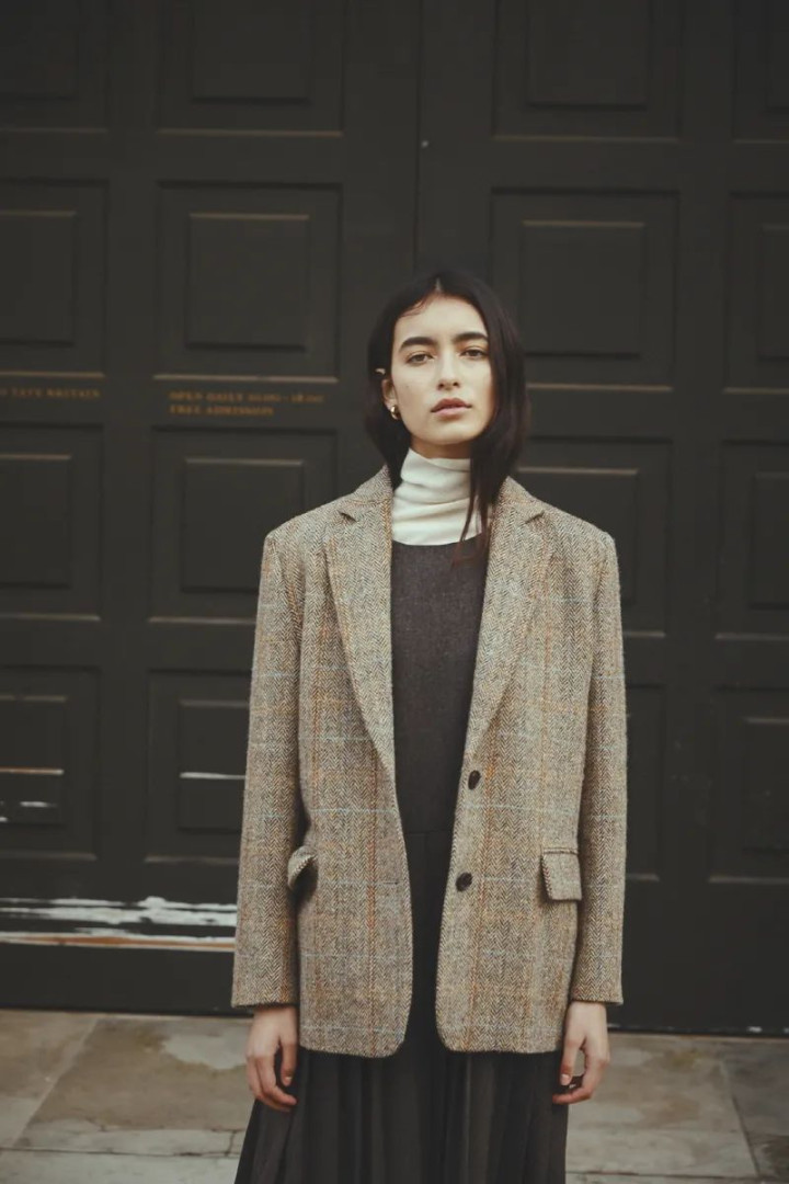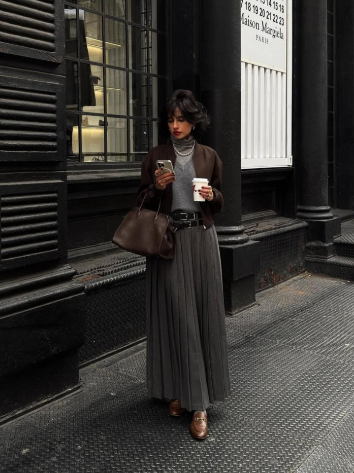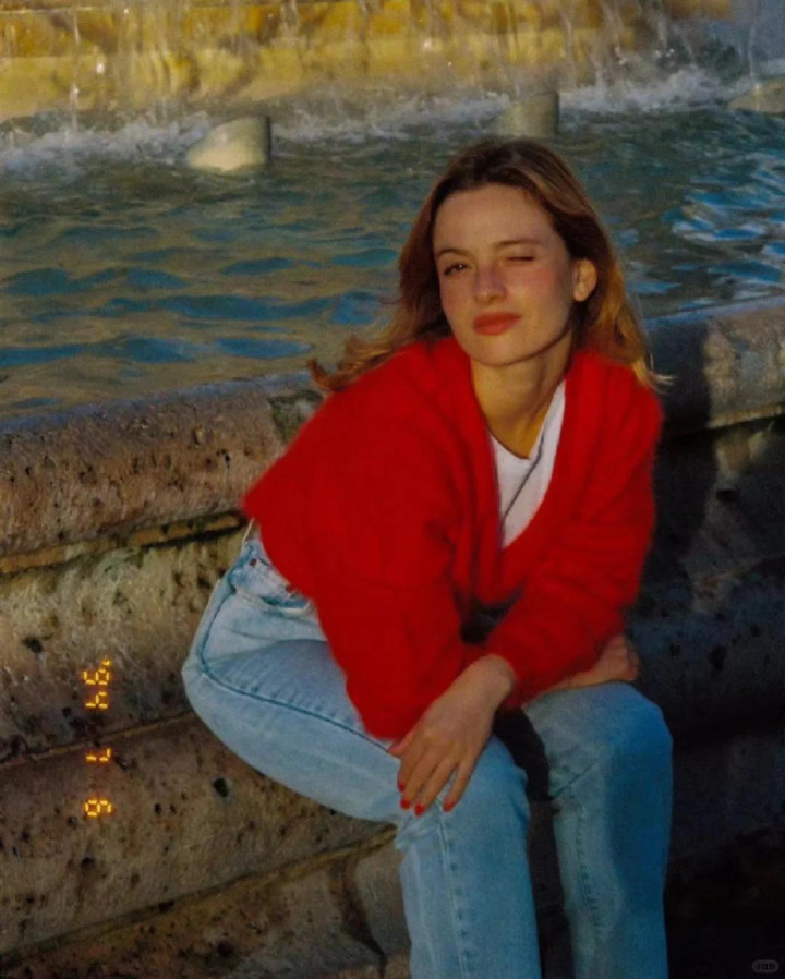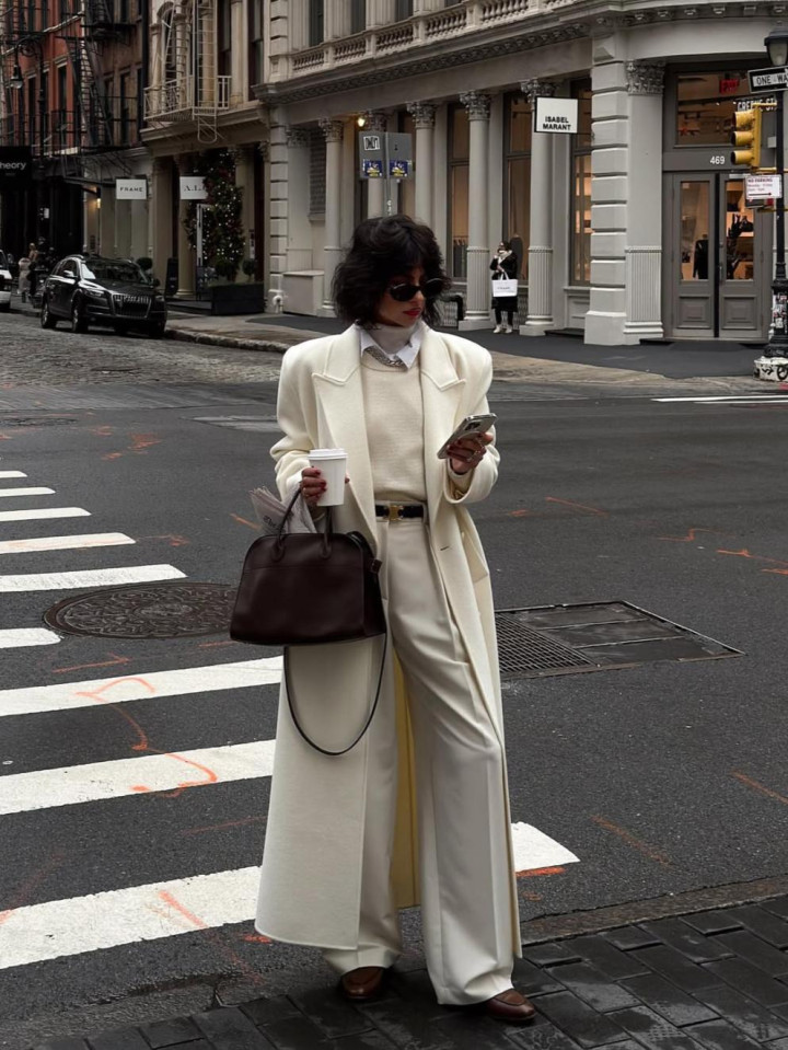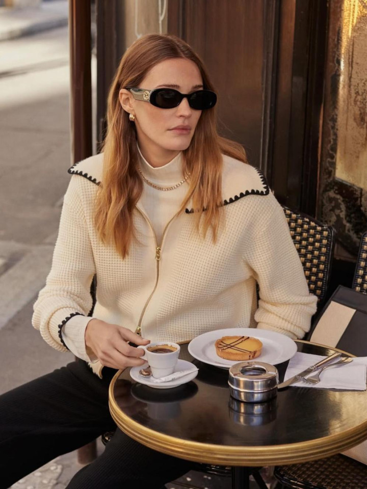 脖颈间穿着高领毛衣,仿佛给自己写了一封私密又舒适的情书,外面套一件圆领毛衣,松松垮垮的,透着几分不经意的时髦。