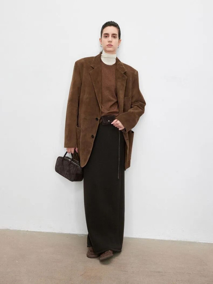 TheRow有一季将宽松的廓形毛衣当作外搭,袖口略微长几公分,露出里面的一小段手腕,让整体搭配更具通气感。