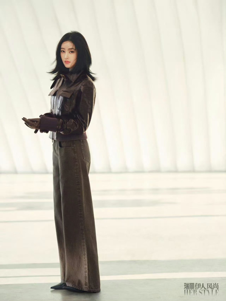 身着咖色皮夹克,搭配阔腿牛仔裤笔直而立,皮革的哑光肌理撞上牛仔的粗粝质感,开云app复古工装风的硬朗气场在光影里层层铺展,尽显浓烈。