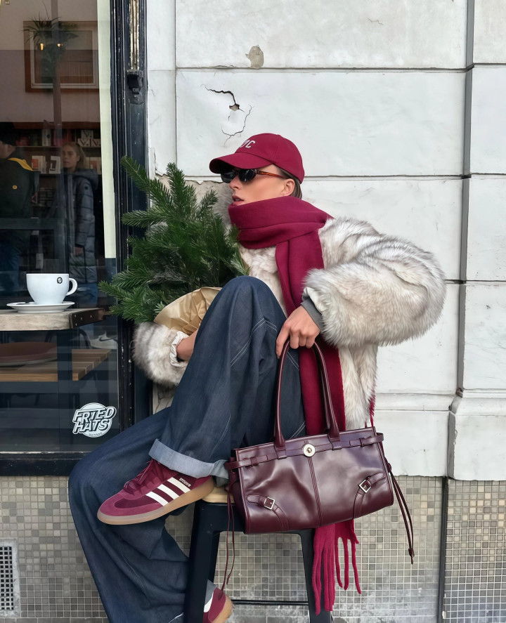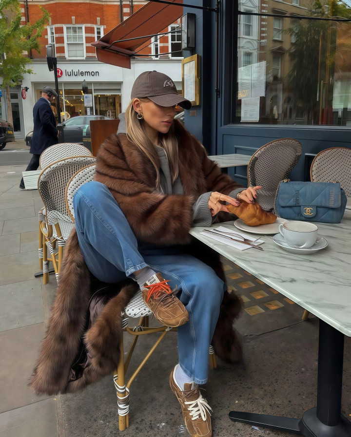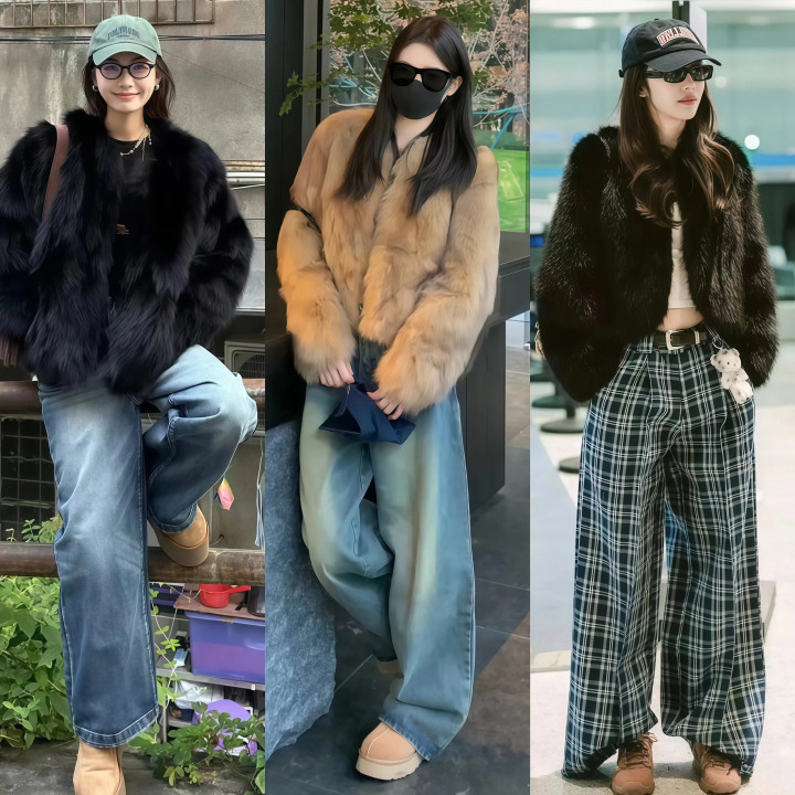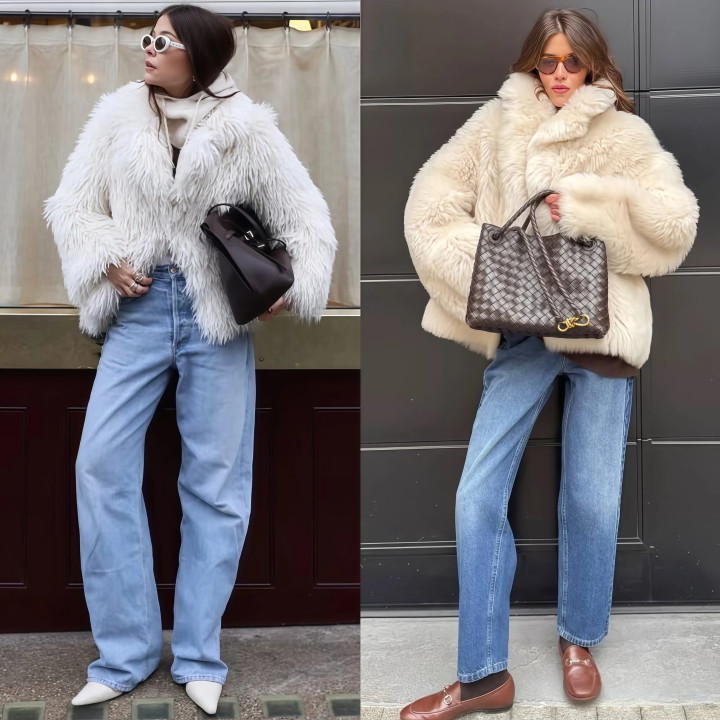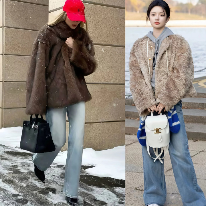 牛仔裤自带的街头气息,能压住一部分皮草那种“隆重感”,让整个人看起来没那么正式,更贴近日常穿着的状态。