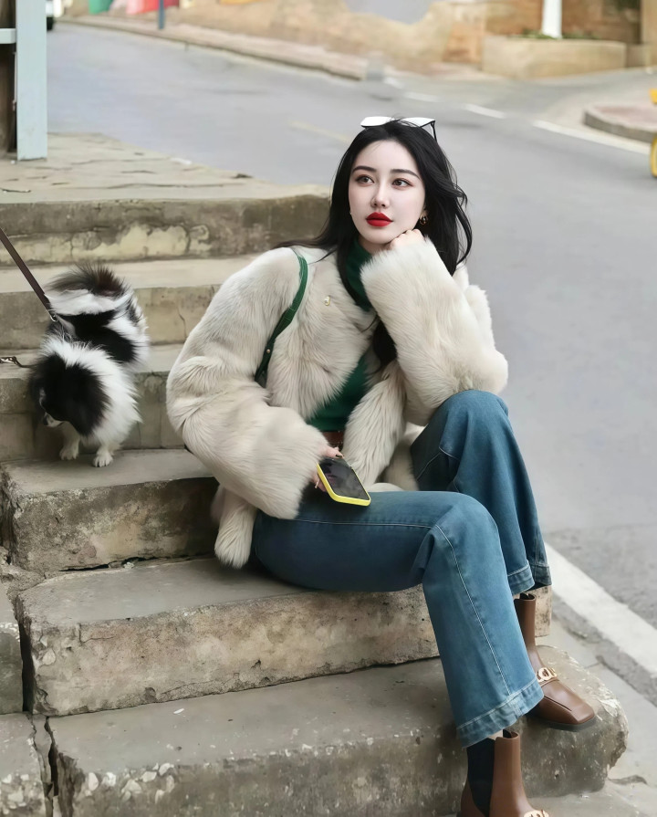 皮草这东西,很多姐妹总觉得它“贵气有余、日常不足”,这个时候,你其实可以搭配一条牛仔裤来试一试?