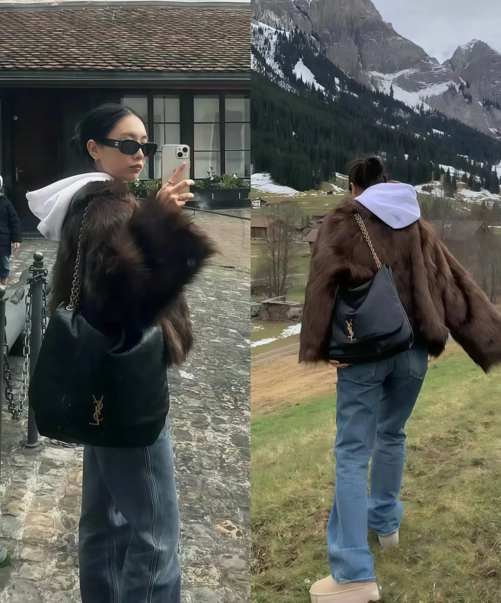 开云 “皮草外套+牛仔裤”, 冬天这么穿太美太时髦了