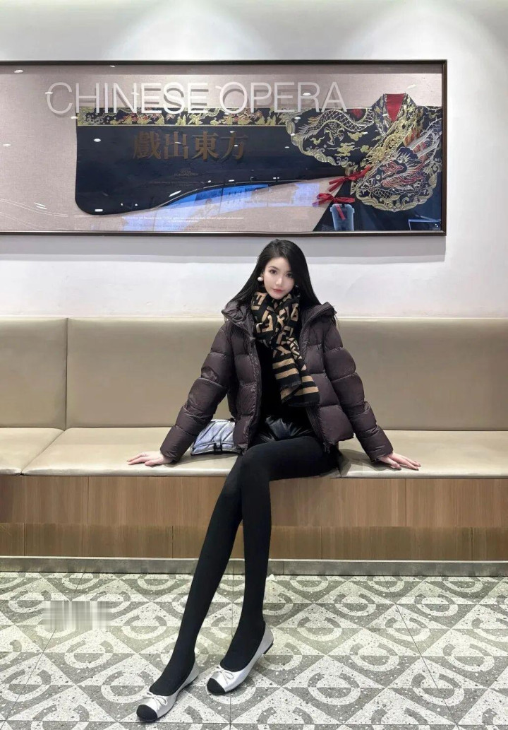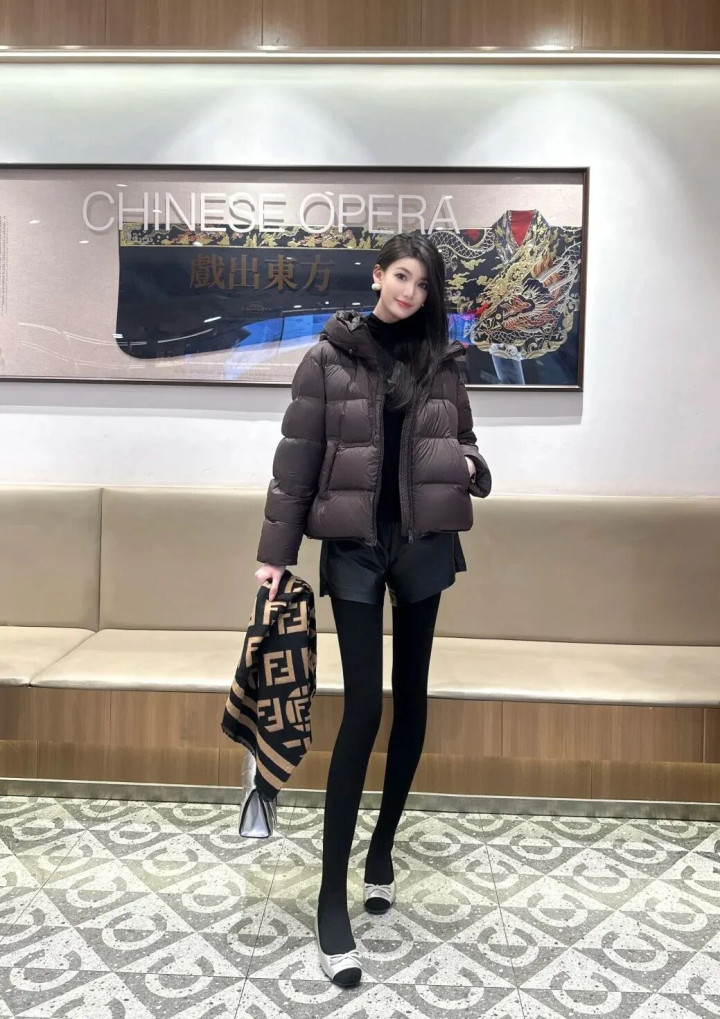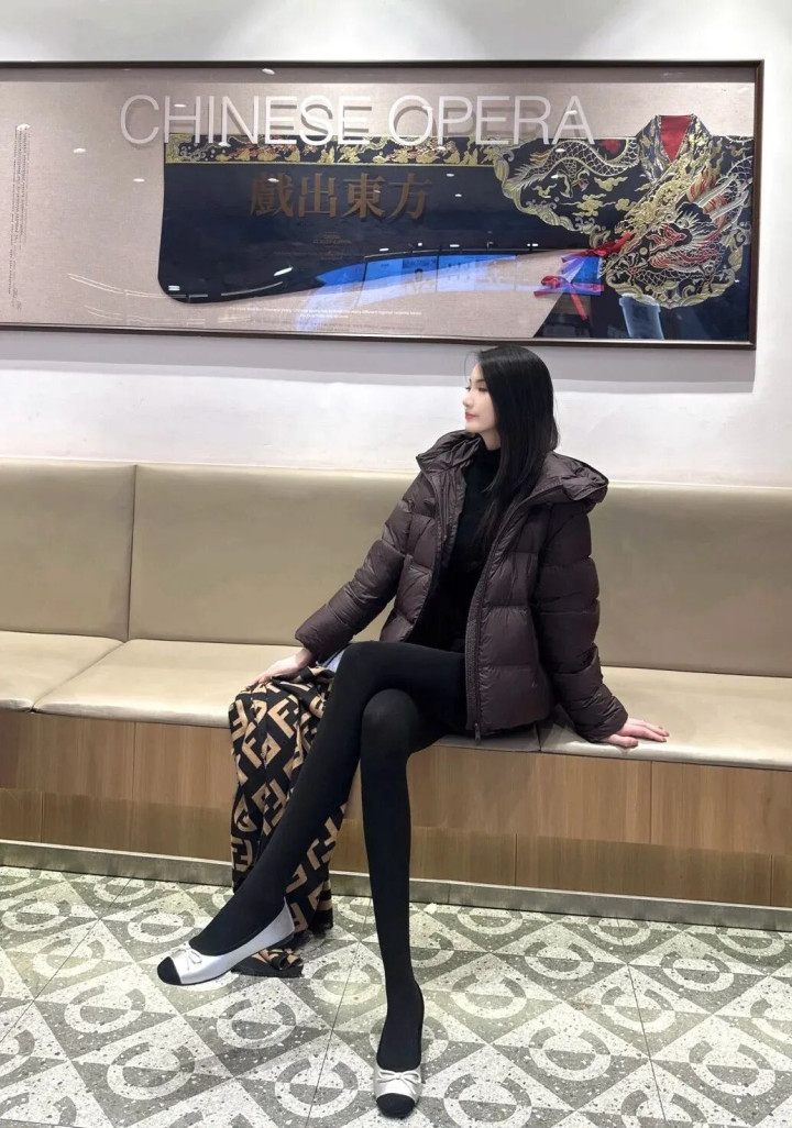 开云app 冬天穿“羽绒服+百褶裙+长靴”, 精致时髦又显高