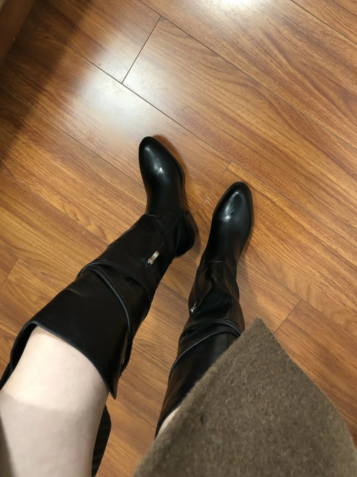 开云app 冬天穿“羽绒服+百褶裙+长靴”, 精致时髦又显高