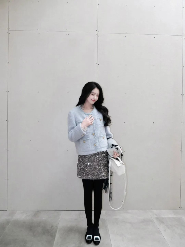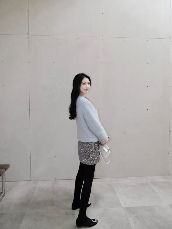 开云app 冬天穿“羽绒服+百褶裙+长靴”, 精致时髦又显高