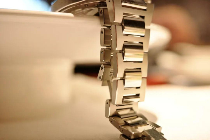 表链的设计也非常重要,这是一体化设计腕表附加手链效果的关键。常见有两种设计路径,一是结构简单,但将表链打磨出贵金属的质感,皇家橡树、雪山傲翼都是这样,效果确实可以,会让人情不自禁翻转手腕;二是主打良好的设计感。鹦鹉螺和桂冠都是表节中粒抛光,走的是设计感的路线,显得会更加精致,经得起端详。