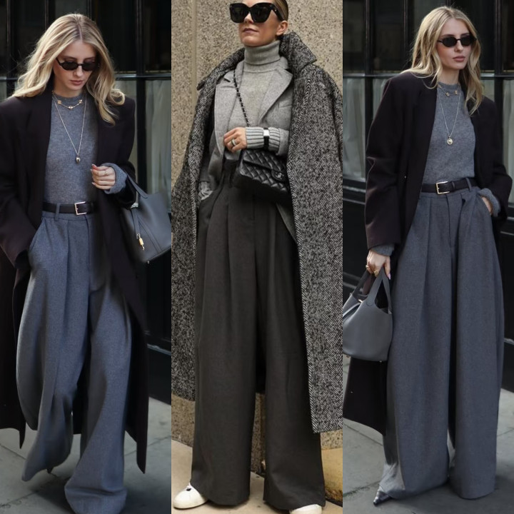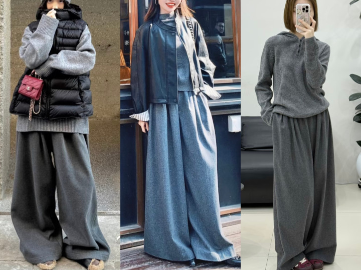 二,冬季有这“4条”灰色阔腿裤,轻松应对不同场合