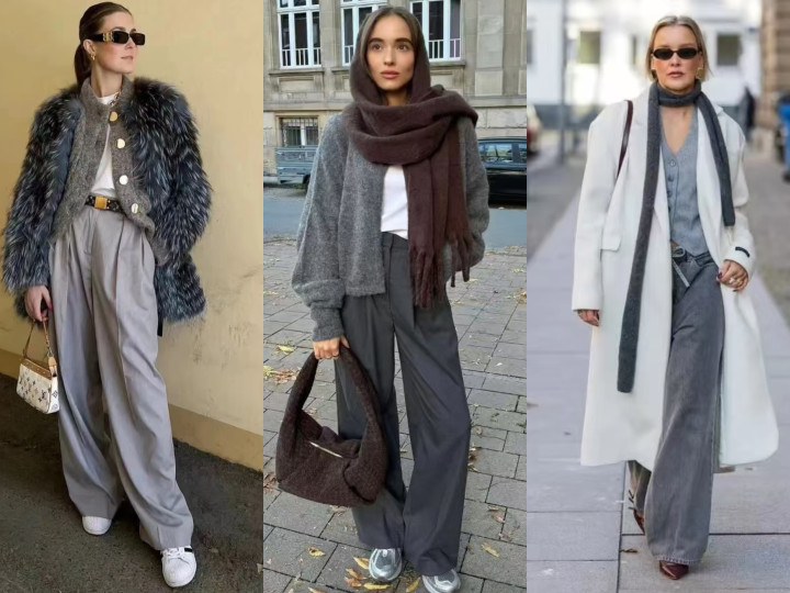 开云app官方在线 冬季不用费脑搭, 有这4条灰色阔腿裤, 日常出门时髦高级两不误