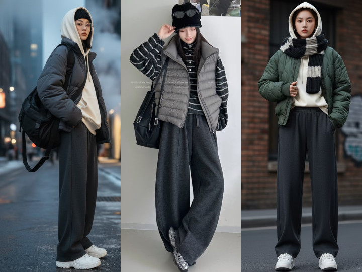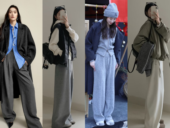 冬季这4条灰色阔腿裤,指的是不同材质的灰色裤子,如羊毛材质、西装面料、棉质牛仔、加绒运动裤等。不同面料的阔腿裤搭配不同上衣,用在不同场合。