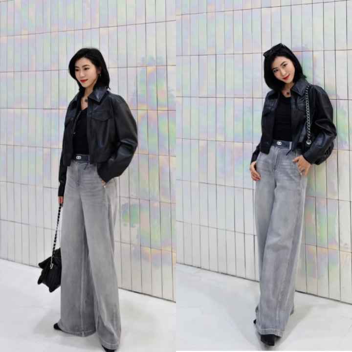 避坑指南:小个子避免选择版型宽松的灰色阔腿裤,长度和宽度比窄版尺寸偏大,驾驭不了。穿上给人拖沓感,压个子又邋遢。