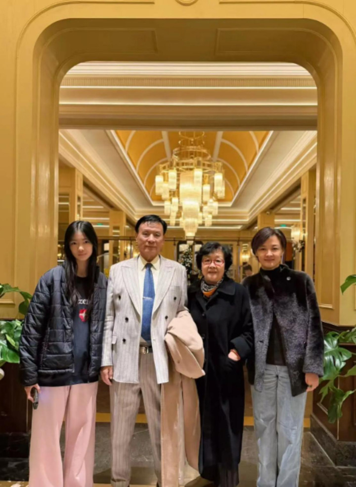 站在合照最左侧的是李小萌 14 岁的女儿,小姑娘披散着一头乌黑长发,身着黑色棉服搭配粉色长裤,装扮简单却透着满满的青春活力。她的五官清秀漂亮,眉眼间与妈妈李小萌十分相似,神韵十足。除了出众的长相,女儿的身高格外引人注目 —— 与身高 170 厘米的李小萌及外公外婆站在一排时,她明显比妈妈高出一截,身高直追外公,目测达到 175 厘米左右,瘦瘦高高的身形格外上镜。